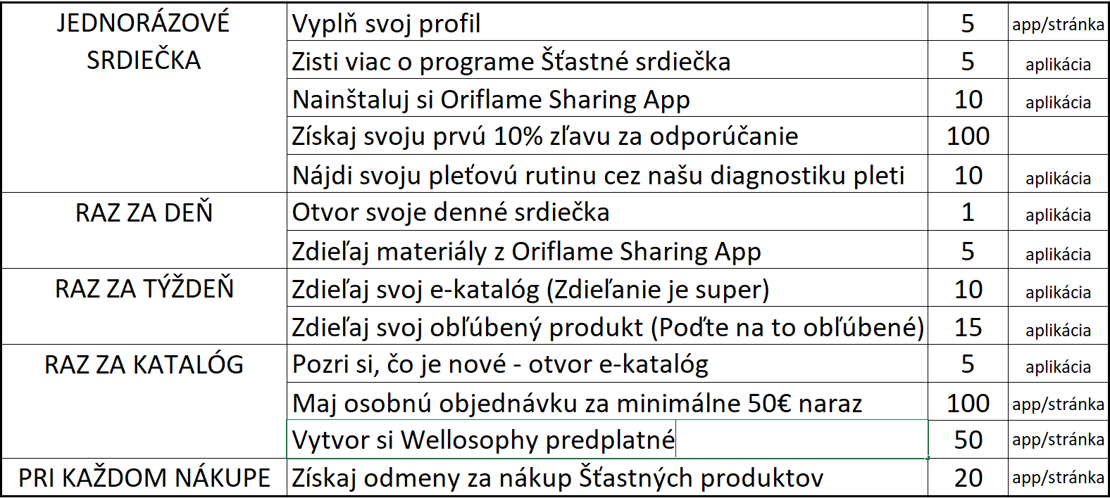 - 100 srdiečok získaš - ak si objednáš výrobky za minimálne 50 € a viac (pre nových toto platí od 6.kampane od ich 1.objednávky)
