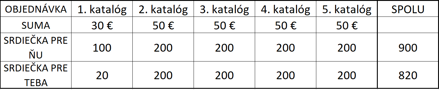 - 200 srdiečok získaš - ak si v nasledujúcich 4-och katalógoch, po jej 1. nákupe spraví objednávky za minimálne 50€